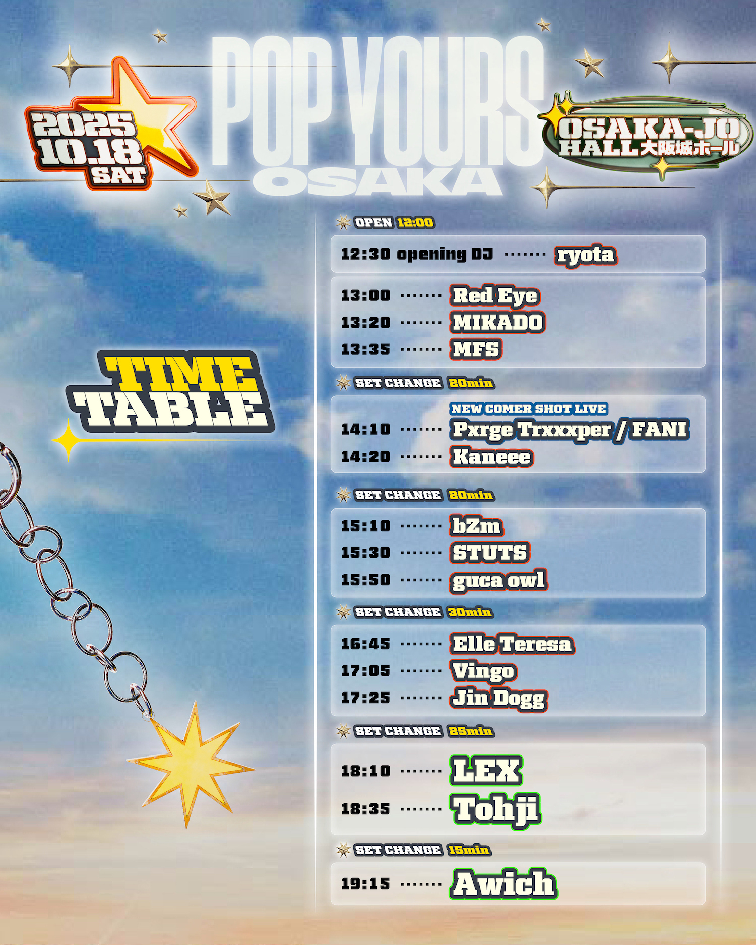 『POP YOURS OSAKA』のタイムテーブルが公開。オープニングDJでryota、MCでMARZYもアナウンス