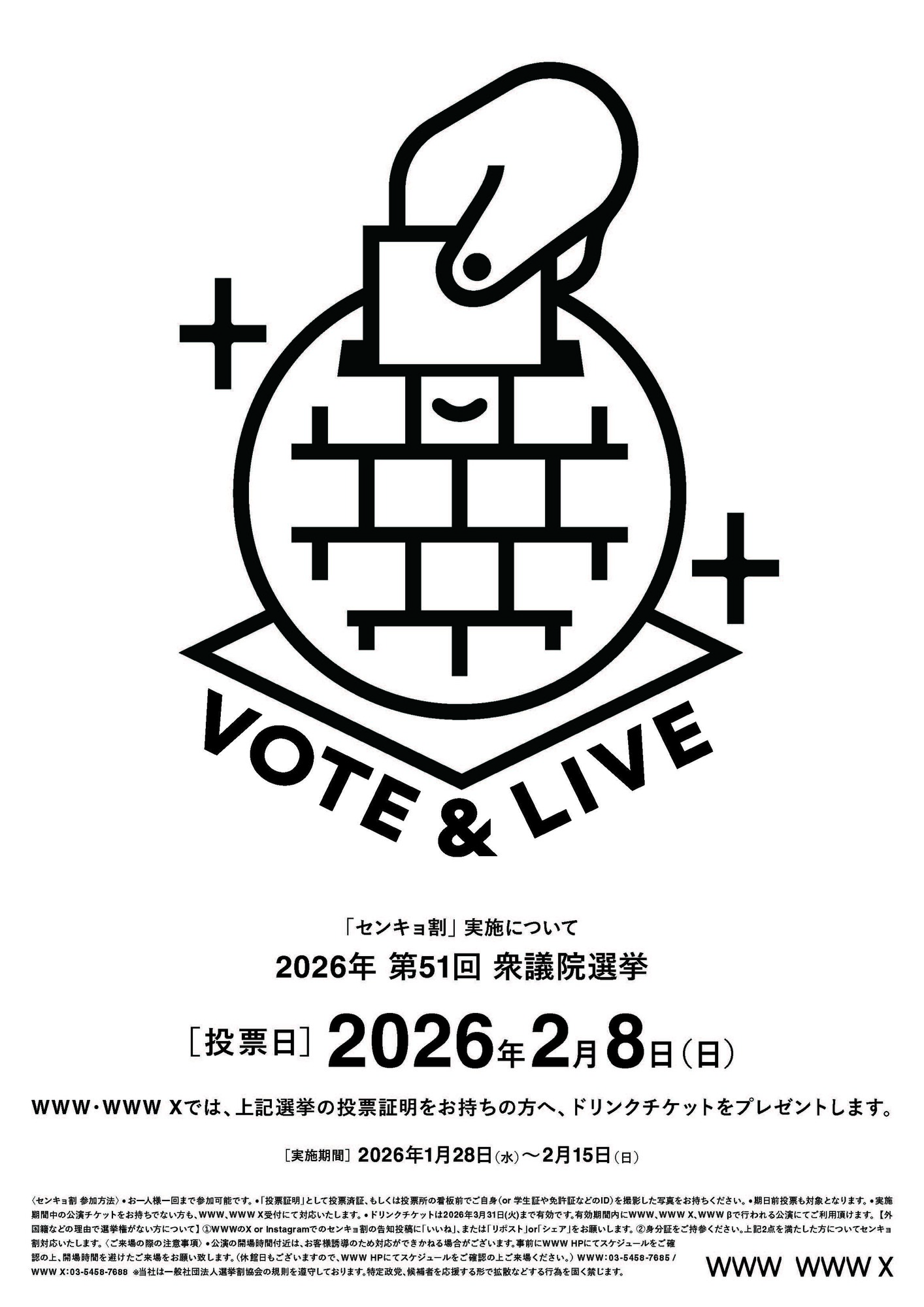 ライブハウスWWW、WWWXにて2026年 第51回 衆議院総選挙での「センキョ割」を実施いたします